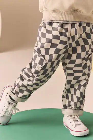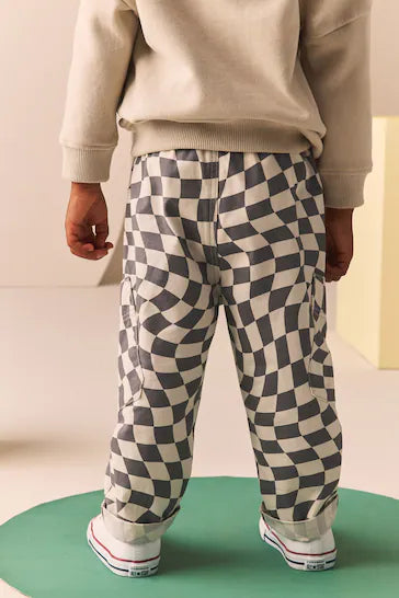 |Boy| Calça Pull-On com Bolso Lateral - Xadrez Cinza/Branco (3 meses a 7 anos)