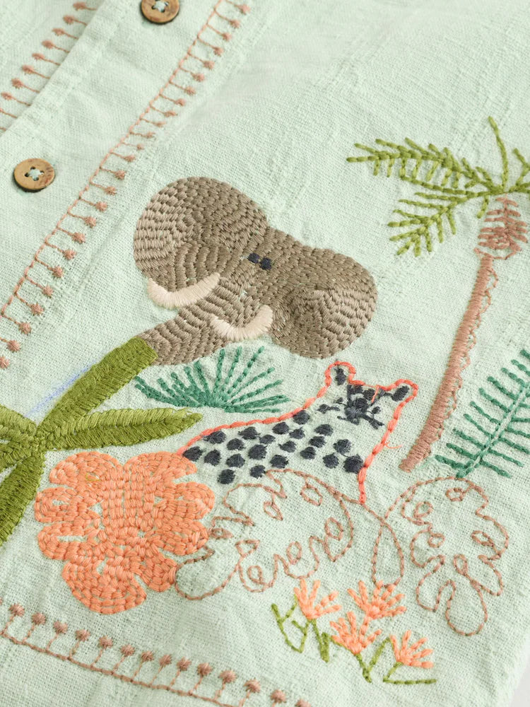 |Boy| Camisa De Manga Curta Com Bordado Safari Verde Menta (3 meses a 7 anos)