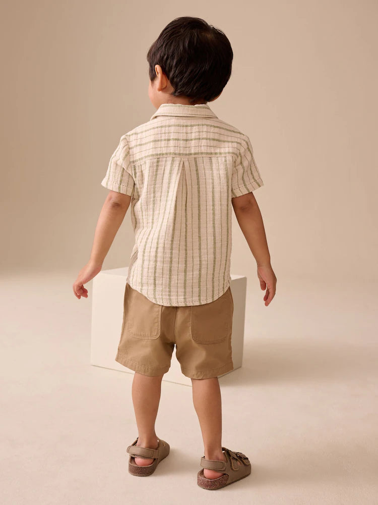 |Boy| Camisa De Manga Curta Listrada Em Tom Cru Com Estampa De Dinossauro (3 meses a 7 anos)