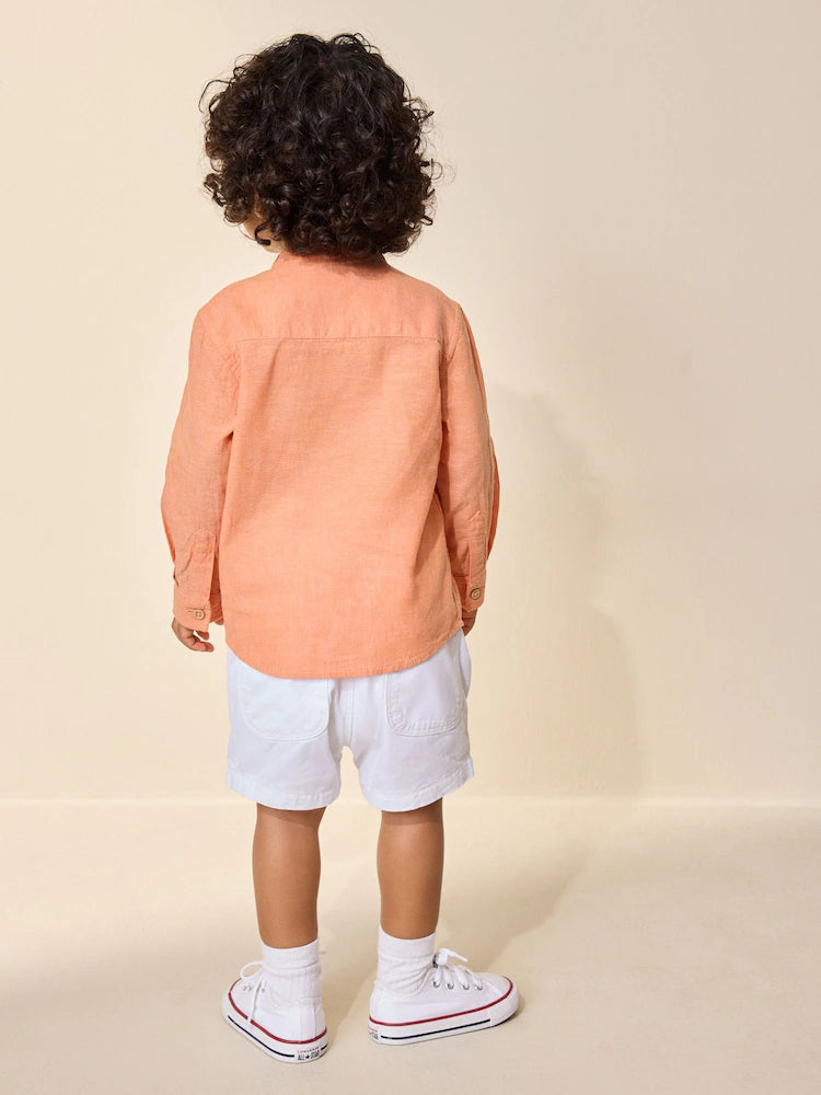 |Boy| Camisa Laranja Com Gola Padre Em Mistura De Linho (3 meses a 7 anos)