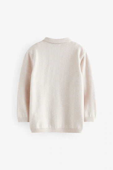 |Boy| Camisa Pólo De Malha De Manga Comprida De Natal 100% Algodão - Ecru Santa Snowman (3 meses a 7 anos)