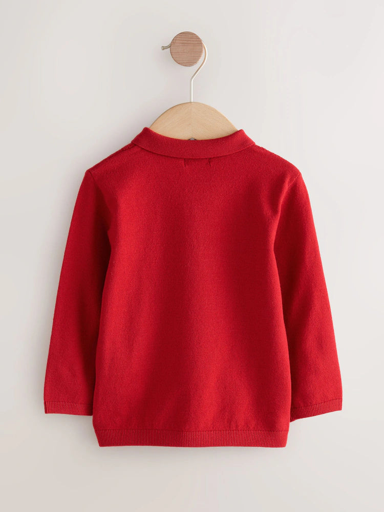 |Boy| Camisa Polo De Malha Trançada Vermelha (3 meses a 7 anos)