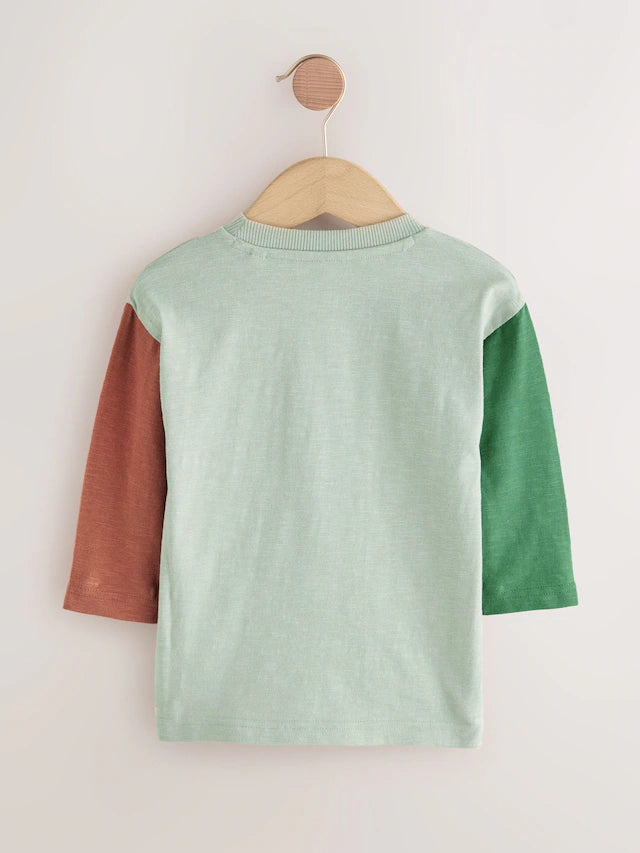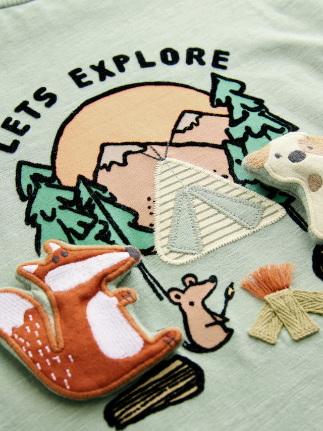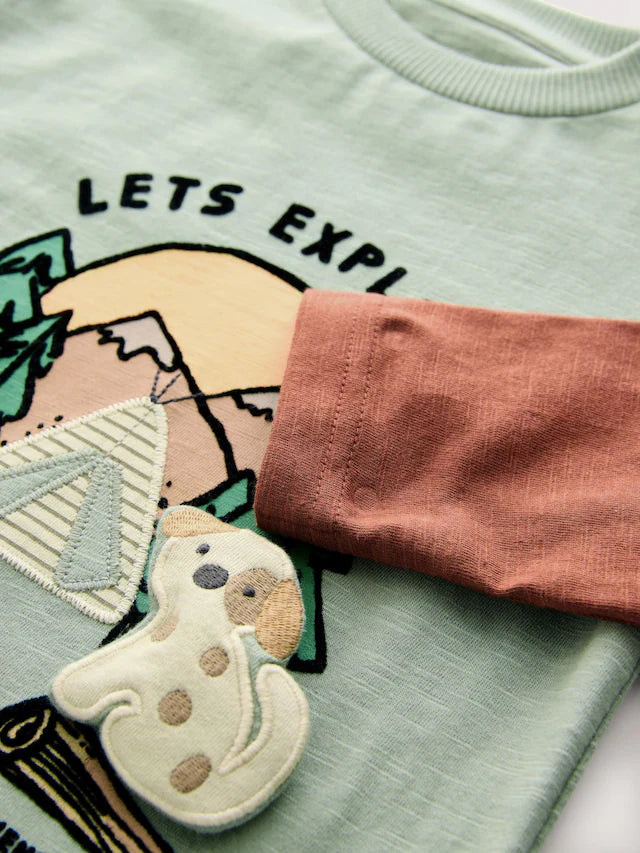 |Boy| Camiseta De Manga Comprida Com Apliques Green Camping Animals (3 meses a 7 anos)
