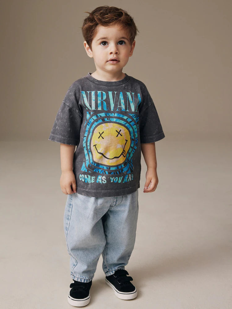 |Boy| Camiseta De Manga Curta Cinza Com Estampa Da Banda Nirvana (3 meses a 8 anos)