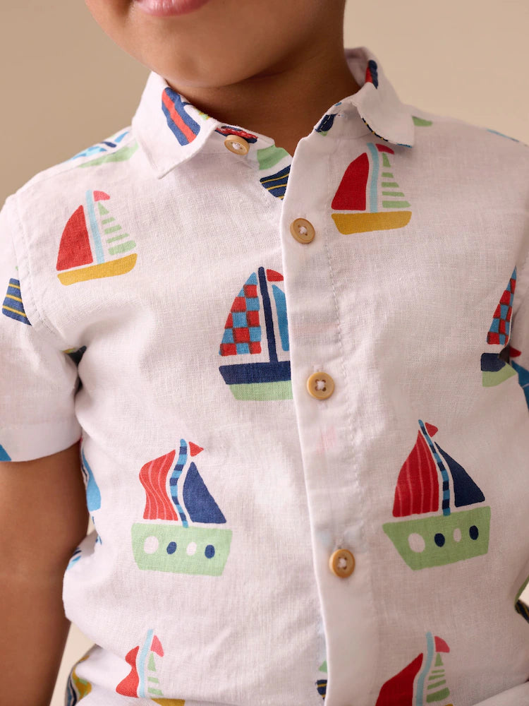 |Boy| Camiseta De Manga Curta Com Estampa Náutica Branca (3 meses a 7 anos)