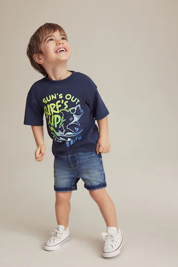|Boy| Camiseta De Personagem De Manga Curta - Tubarão da Marinha (3 meses a 7 anos)