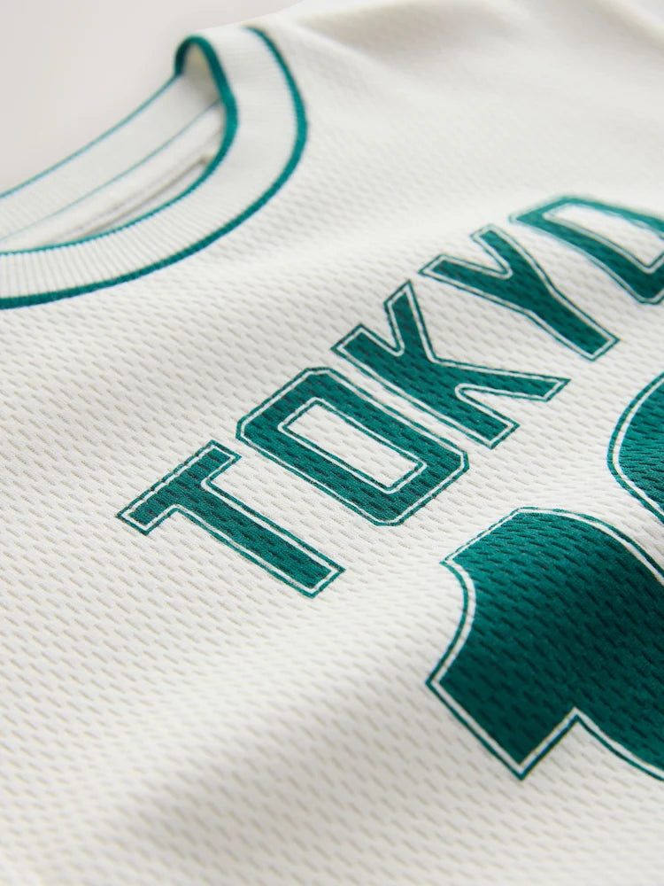 |Boy| Camiseta Universitária Creme De Manga Curta Com Estampa (3 meses a 7 anos)