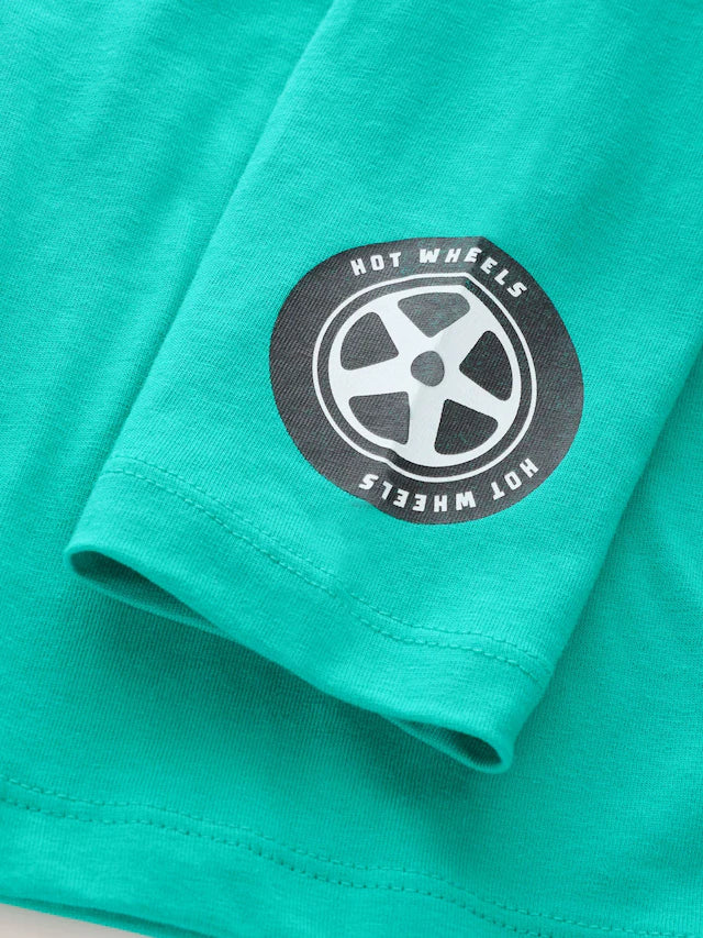 |Boy| Camiseta Verde Hot Wheels De Manga Comprida (9 meses a 8 anos)