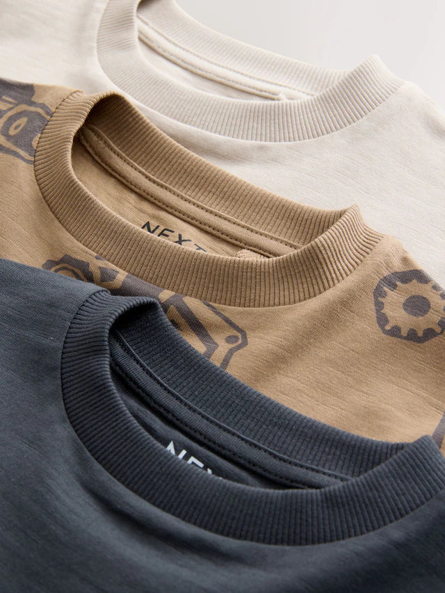 |Boy| Camisetas Estampadas Gráficas De Manga Comprida Digger Pretas/Marrons, Pacote com 3 (3 meses a 7 anos)