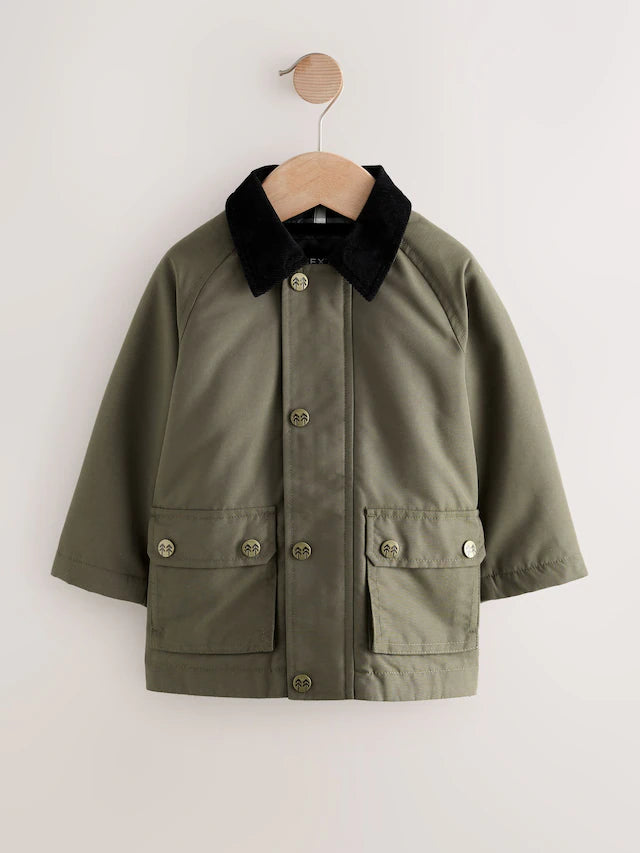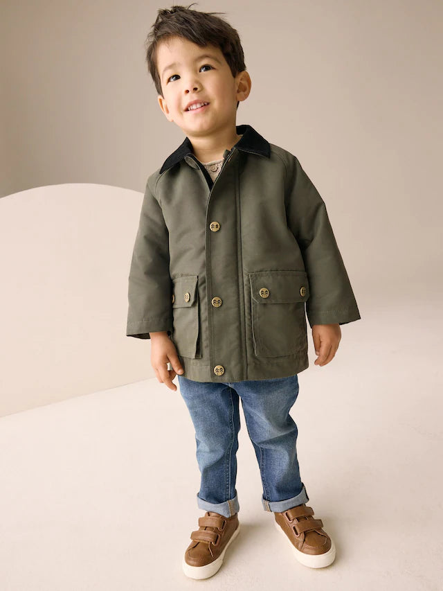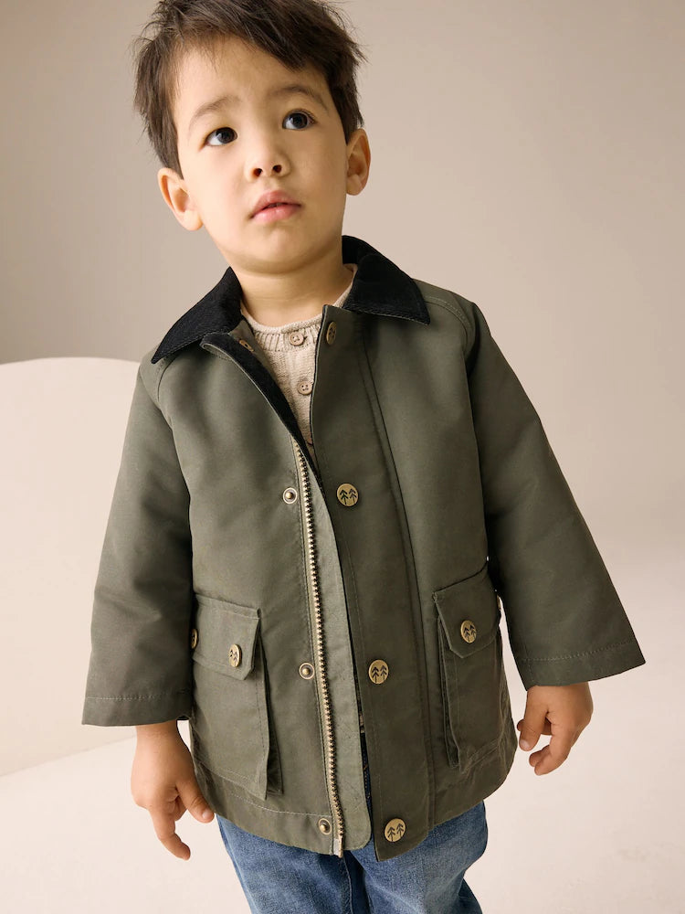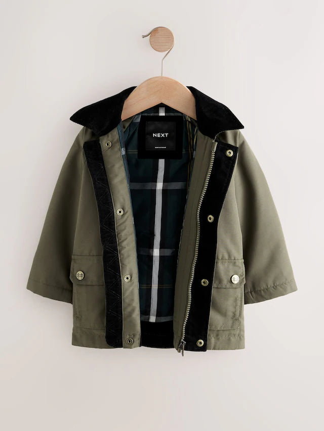 |Boy| Casaco Cáqui Verde Com Gola De Veludo (3 meses a 7 anos)