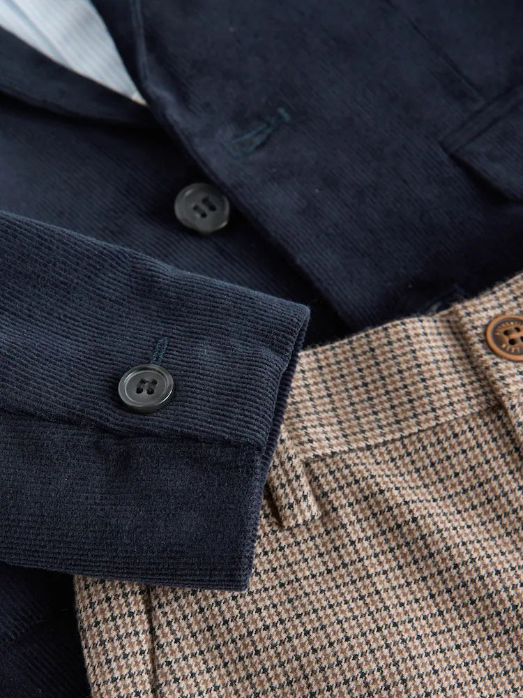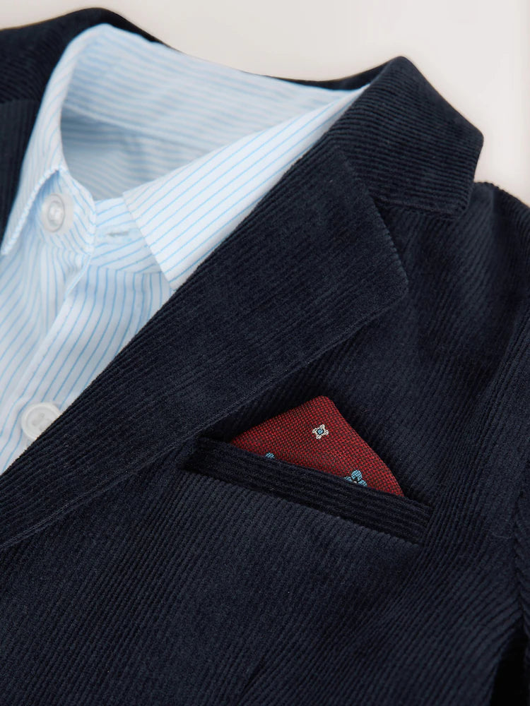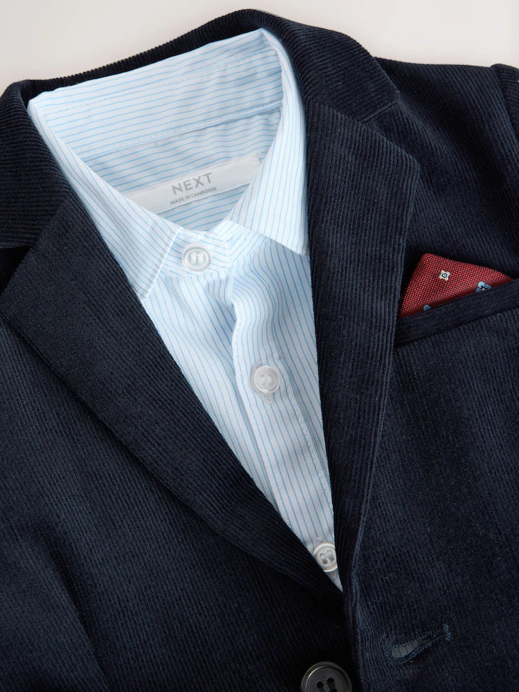 |Boy| Conjunto De Blazer, Camisa e Calça De Veludo Cotelê Azul Marinho (3 meses a 9 anos)