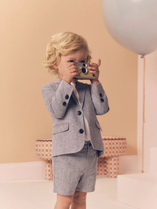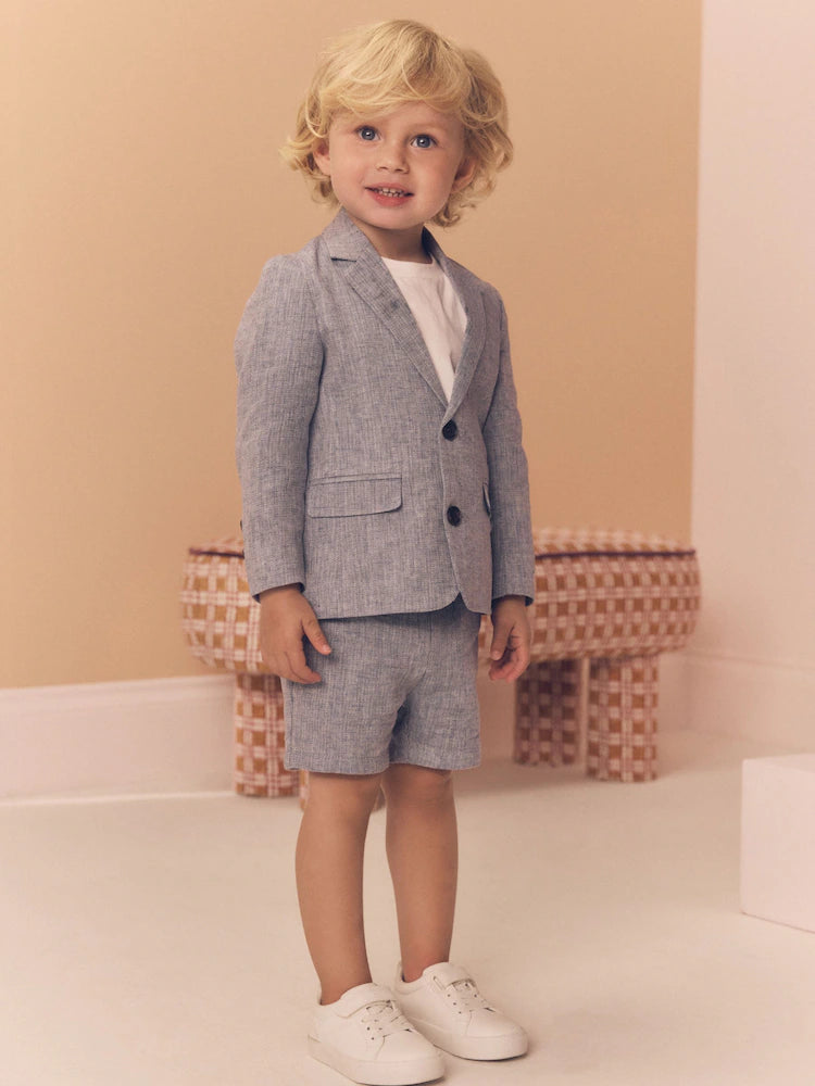 |Boy| Conjunto De Blazer, Camiseta e Shorts Em Mistura De Linho Azul (3 meses a 9 anos)