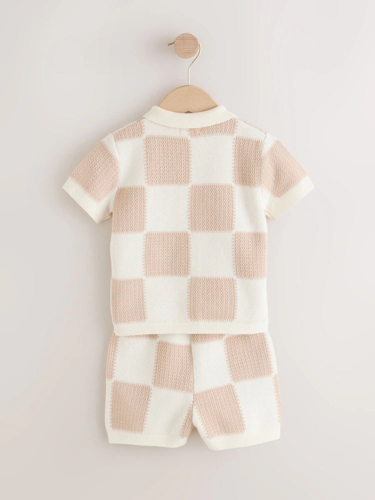 |Boy| Conjunto De Camisa Polo e Shorts De Malha Xadrez Neutro (3 meses a 10 anos)