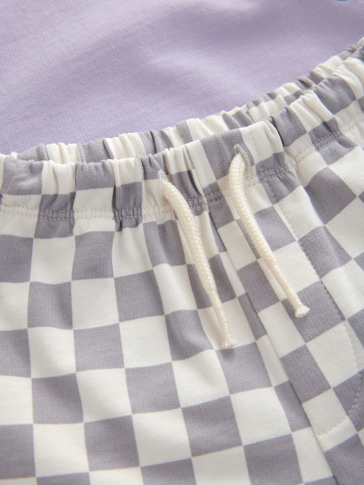 |Boy| Conjunto De Camiseta Curta Xadrez Lilás e Roxa Hot Wheels (9 meses a 8 anos)