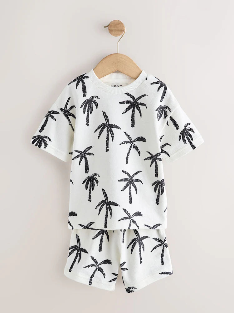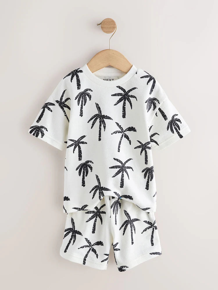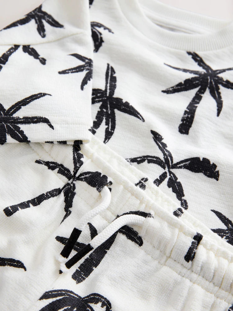 |Boy| Conjunto De Camiseta De Manga Curta e Shorts Com Estampa Total De Palmeiras Em Branco e preto (3 meses a 7 anos)