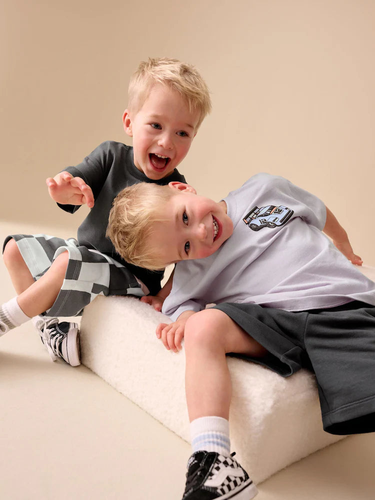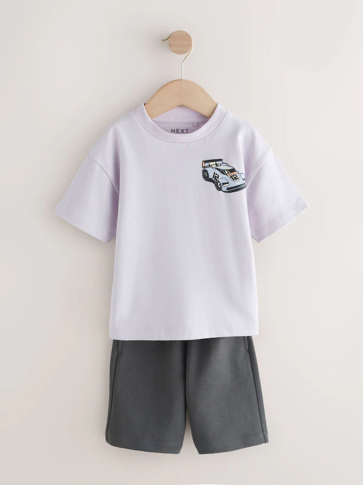 |Boy| Conjunto De Camiseta De Manga Curta e Shorts Em Cinza Carvão/Lilás (2 peças, tamanhos de 3 meses a 7 anos)