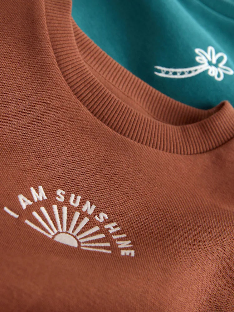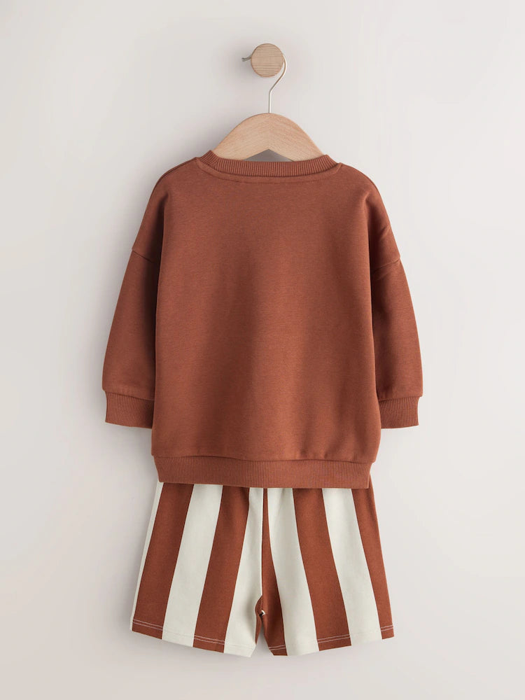 |Boy| Conjunto De Moletom Com Gola Redonda e Shorts Nas Cores Marrom Ferrugem e Verde-azulado (3 meses a 7 anos)