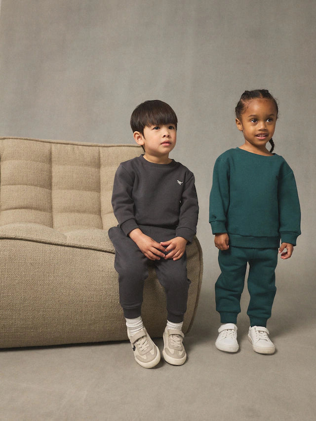|Boy| Conjunto De Moletom e Calça Jogger Cinza Carvão/Verde, Pacote Com 2 (3 meses a 7 anos)