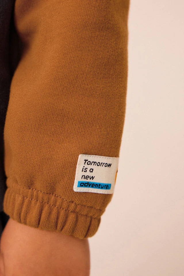 |Boy| Conjunto De Moletom e Joggers Colorblock Marrom Ferrugem (3 meses a 7 anos)