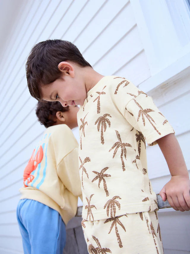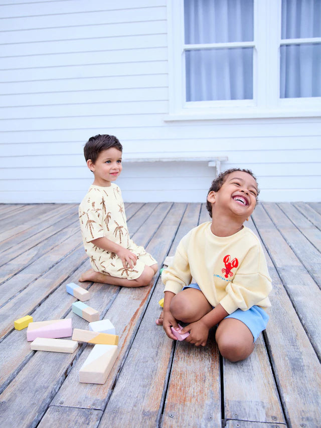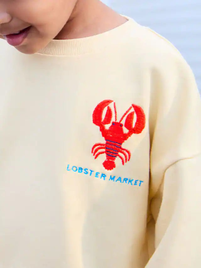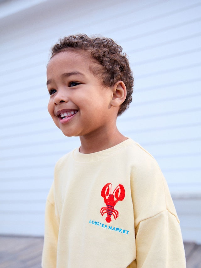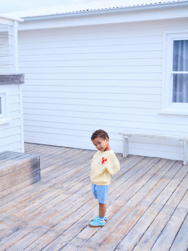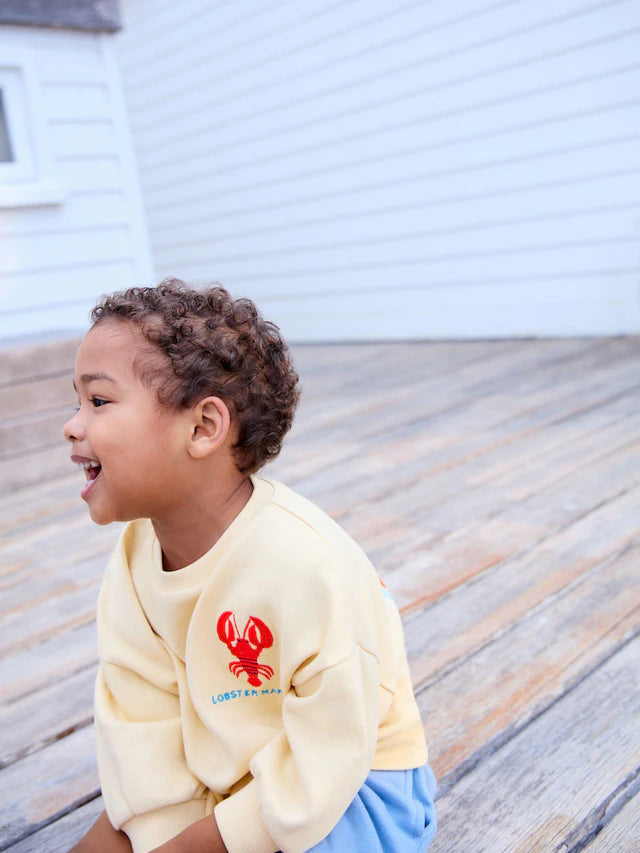 |Boy| Conjunto De Moletom e Shorts 100% Algodão Com Estampa De Lagosta Amarela/Azul (3 meses a 7 anos)