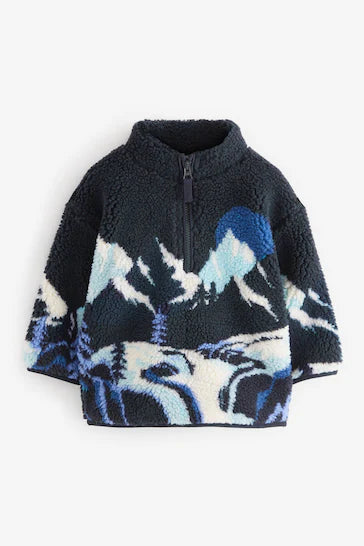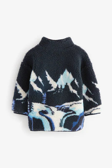 |Boy| Jaqueta De Lã Com Zíper Em Toda a Cena Da Navy Mountains (3 meses a 7 anos)