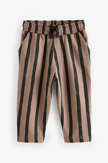 |Boy| Joggers Em Jersey Listrado Marrom/Preto 100% Algodão (3 meses a 7 anos)