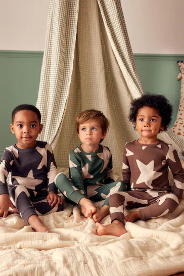 |Boy| Pacote De 3 Pijamas Snuggle – Estrelas Verdes/Cru/Marrom (9 meses a 10 anos)