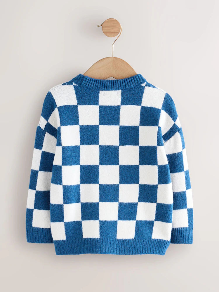 |Boy| Suéter De Natal Em Tricô Azul Cobalto Com Papai Noel (3 meses a 7 anos)