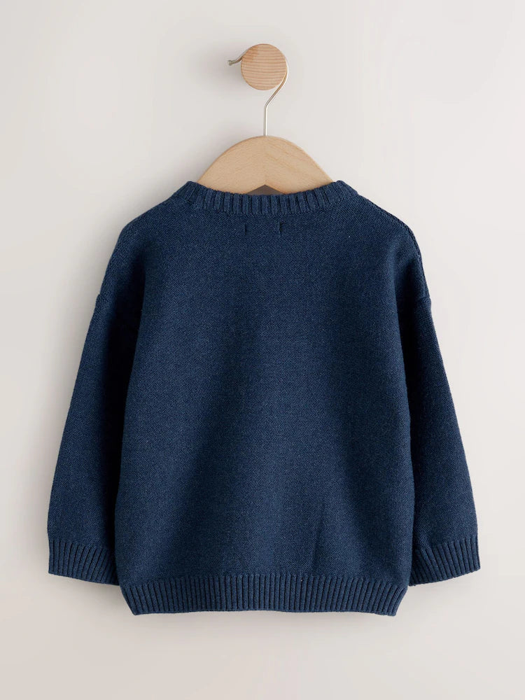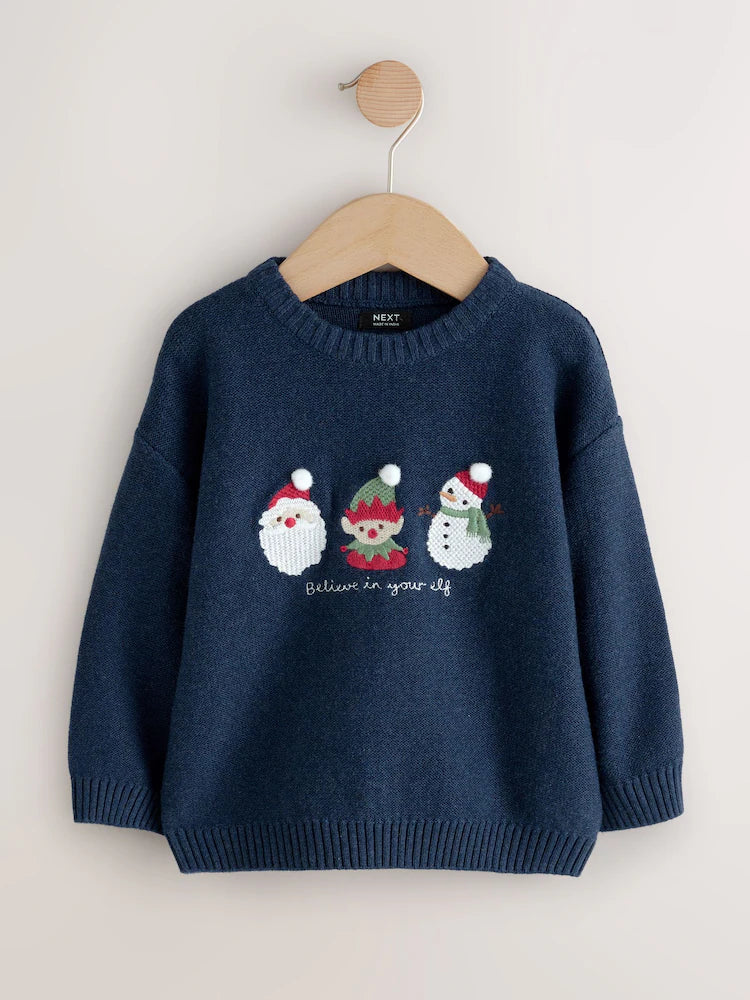 |Boy| Suéter De Natal Em Tricô Azul Marinho (3 meses a 7 anos)