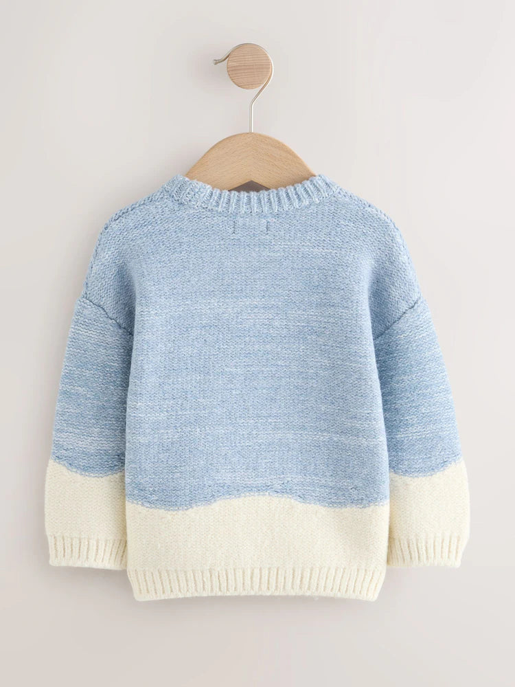 |Boy| Suéter De Natal Em Tricô Com Boneco De Neve Azul/Cru (3 meses a 7 anos)