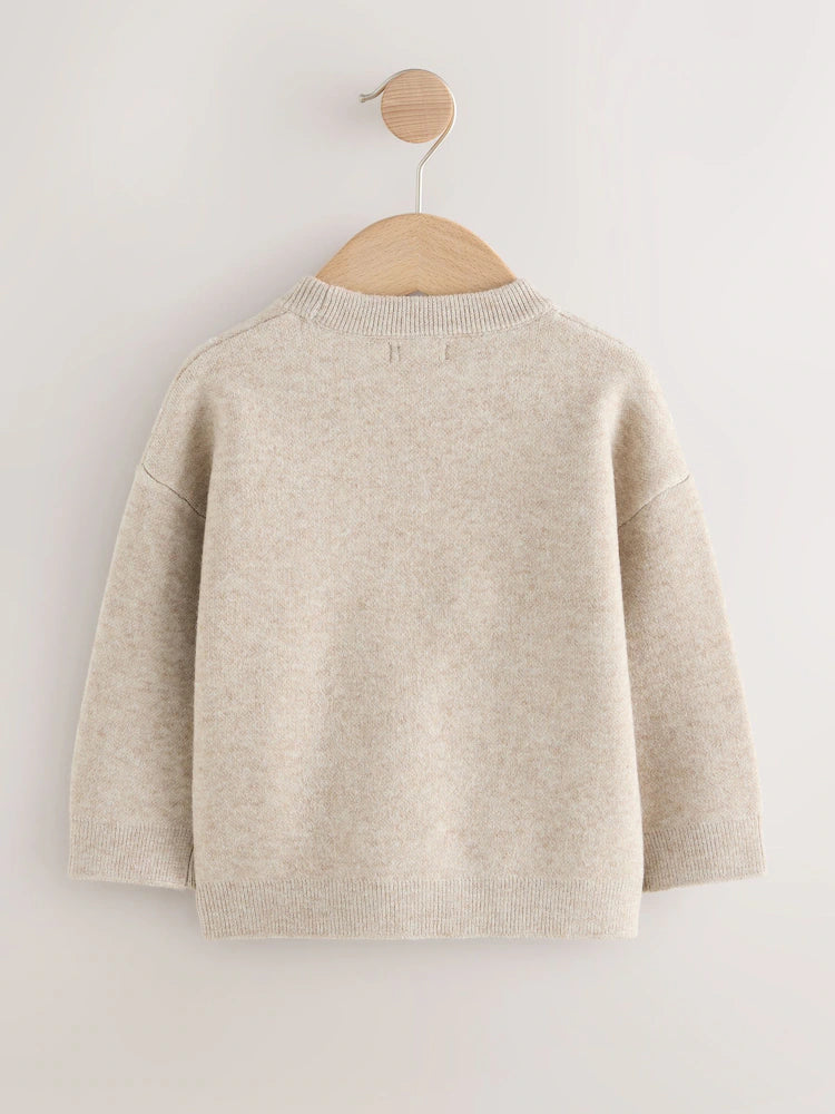 |Boy| Suéter De Natal Em Tricô Com Estampa De Casa De Gengibre Neutra (3 meses a 7 anos)
