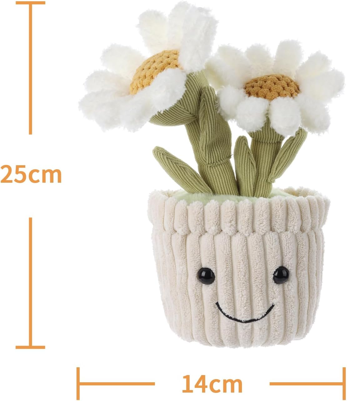 - Tamanho perfeito: o adorável vaso de peluche mede 25 cm, o que é um tamanho perfeito para as crianças abraçarem e fazerem companhia, além de ser muito prático para levar para acampamentos e passeios.