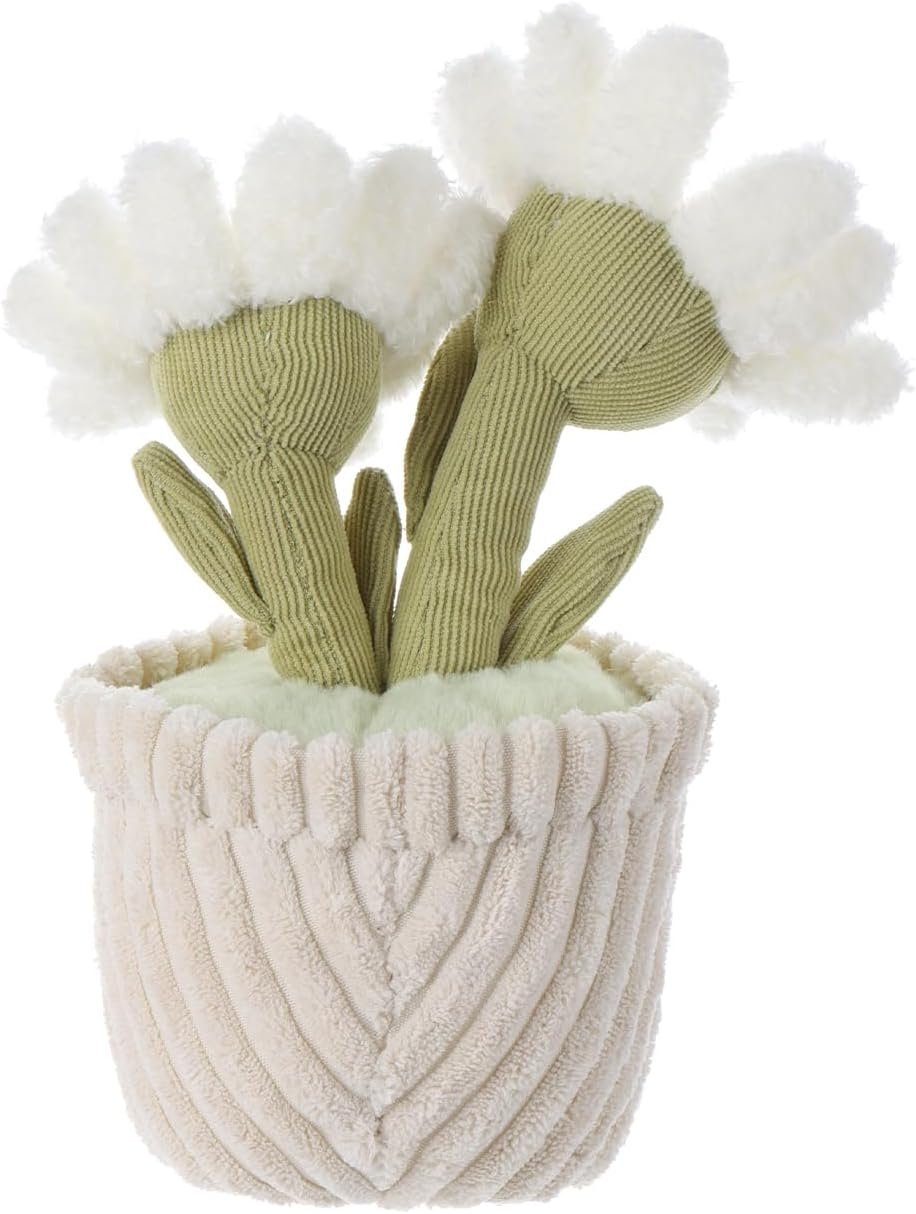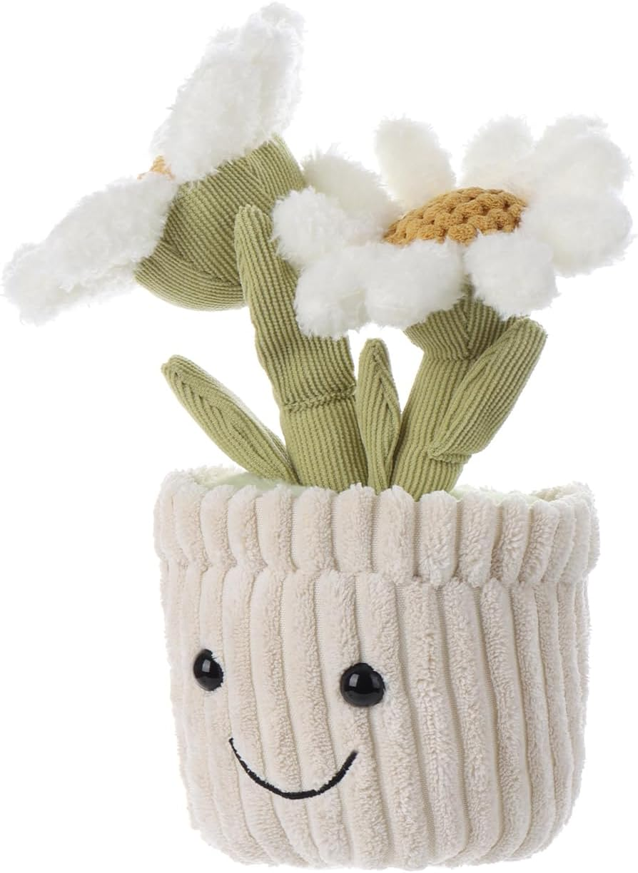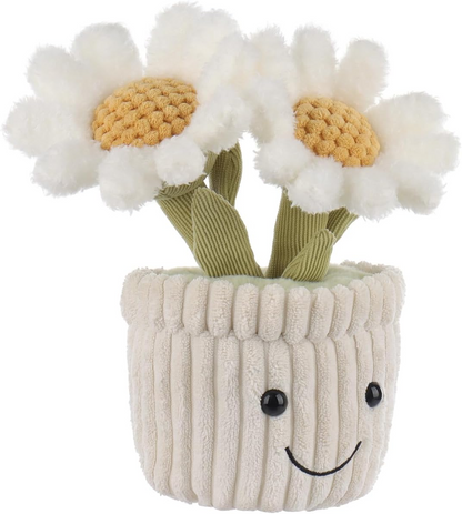 Brinquedo de peluche macio de planta de margarida de cordeiro damasco, vaso de flores branco de peluche, peluche kawaii para crianças, 10"