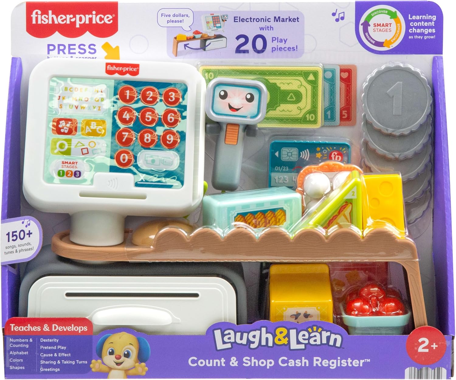 - Caixa registradora e mercadinho de brinquedo com mais de 150 músicas, sons e frases para brincadeiras interativas de compras.