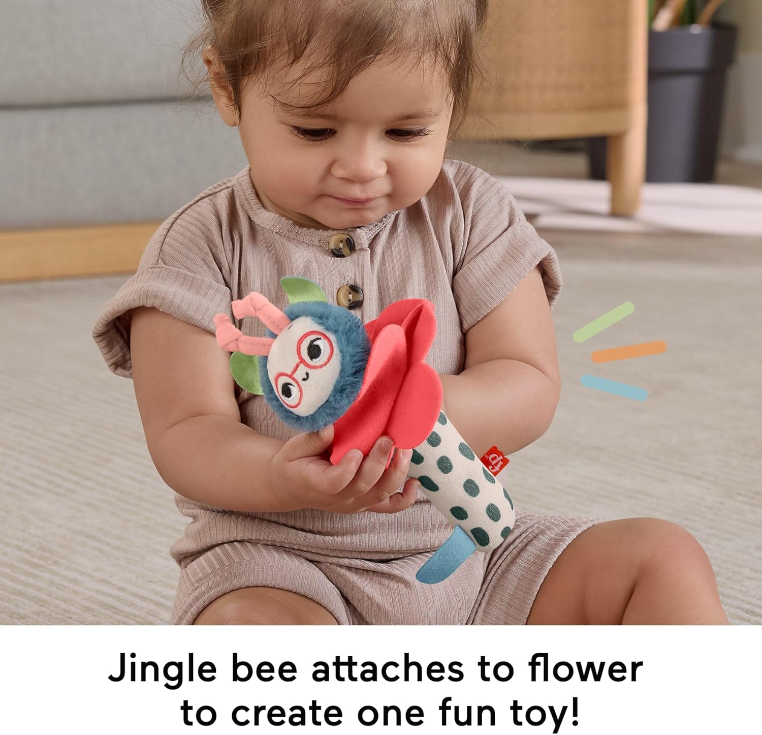 - O chocalho em forma de flor e a abelha com guizo são fáceis de segurar e têm o tamanho ideal para as mãozinhas dos bebês.
