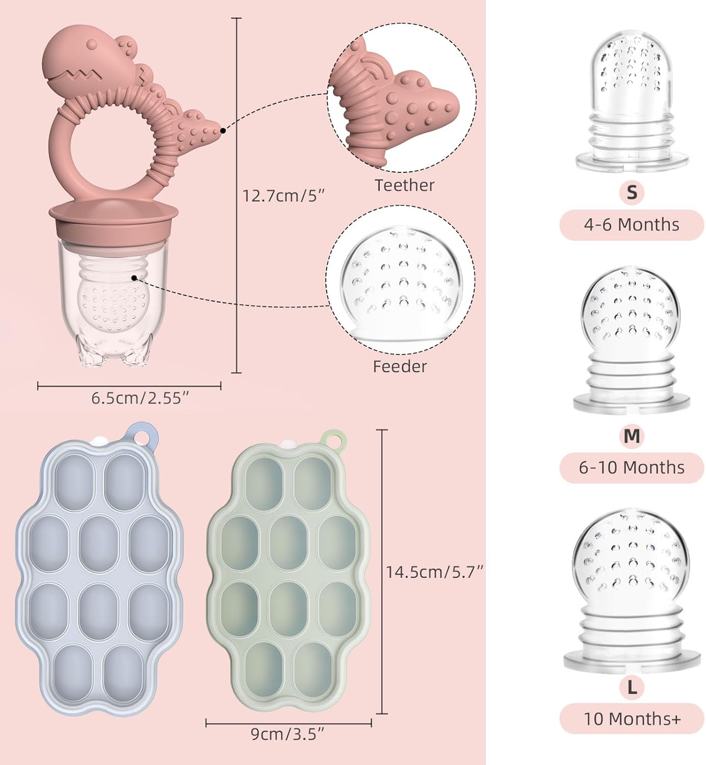 • ♥ VERSÁTIL E PRÁTICO - O alimentador de comida para bebês também pode ser usado como chupeta de frutas, com design fofo em formato de dinossauro, estimula o apetite do bebê, ajuda a introduzir frutas frescas ao seu pequeno enquanto alivia o desconforto da dentição. Perfeito para o desmame guiado pelo bebê.
