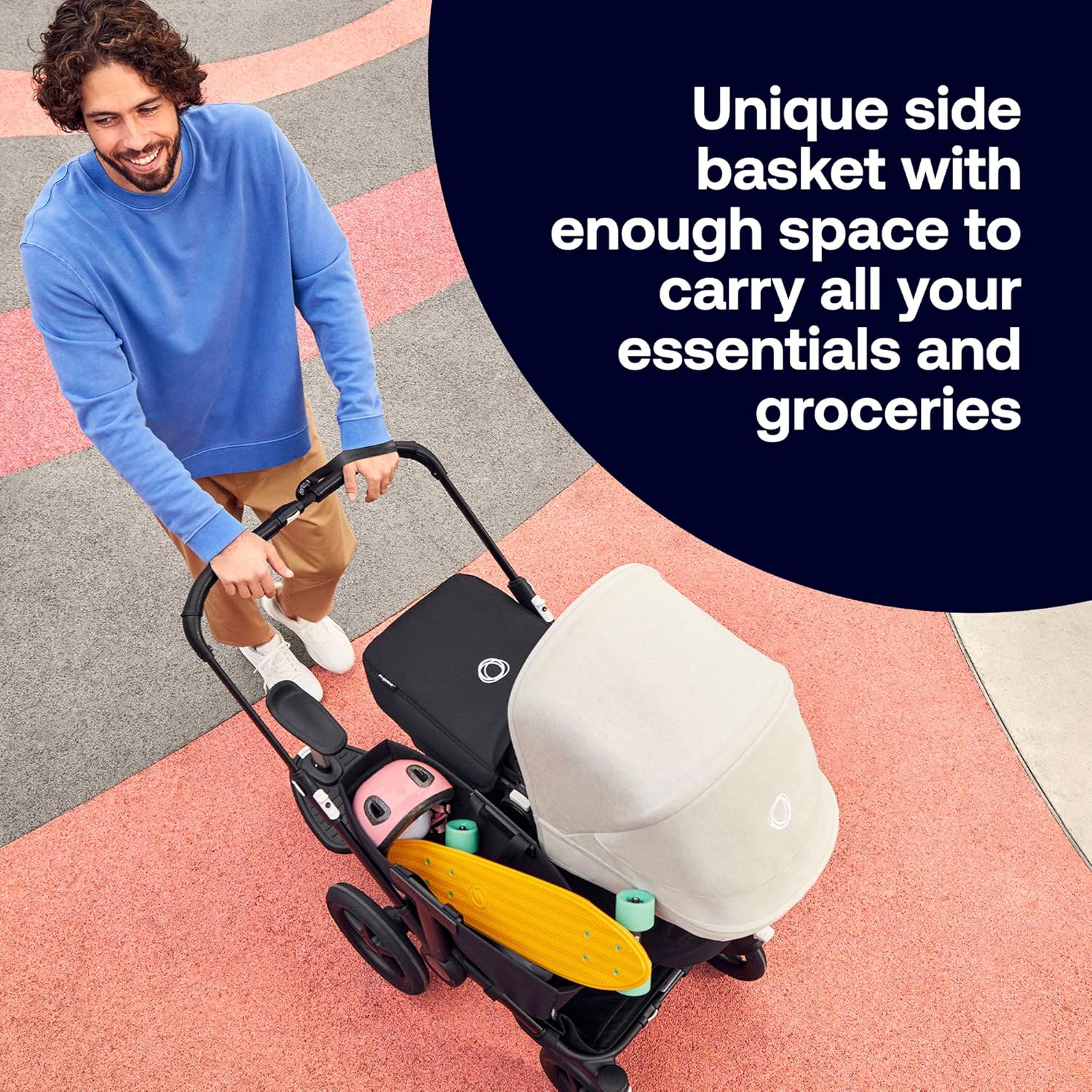 Bugaboo Donkey 5 Mono, conversível em carrinho duplo lado a lado, design aprimorado, assento reversível, direção com uma mão e cesta lateral, preto meia-noite