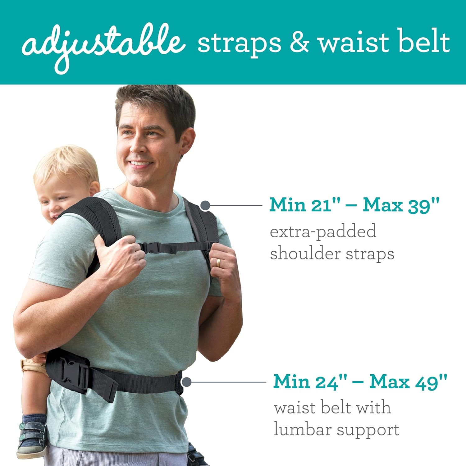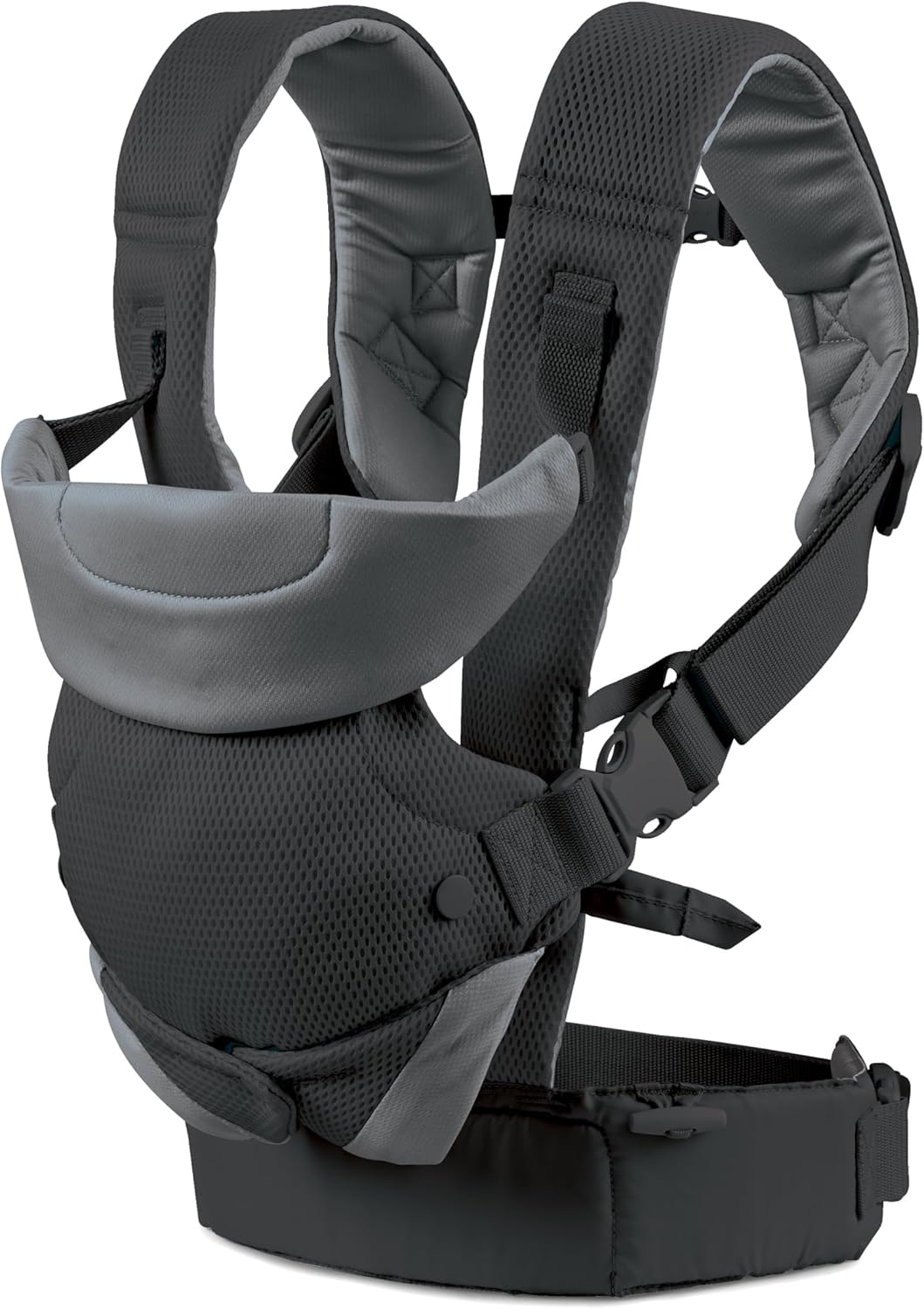 Canguru Infantino Flip 4 em 1 Leve e Arejado - Respirável, Suporte Lombar, Cinto de Cintura Ajustável, Apoio de Cabeça, Assento Ergonômico, Alças Macias para Recém-Nascidos e Crianças de 3,6 a 14,5 kg, Cinza Escuro