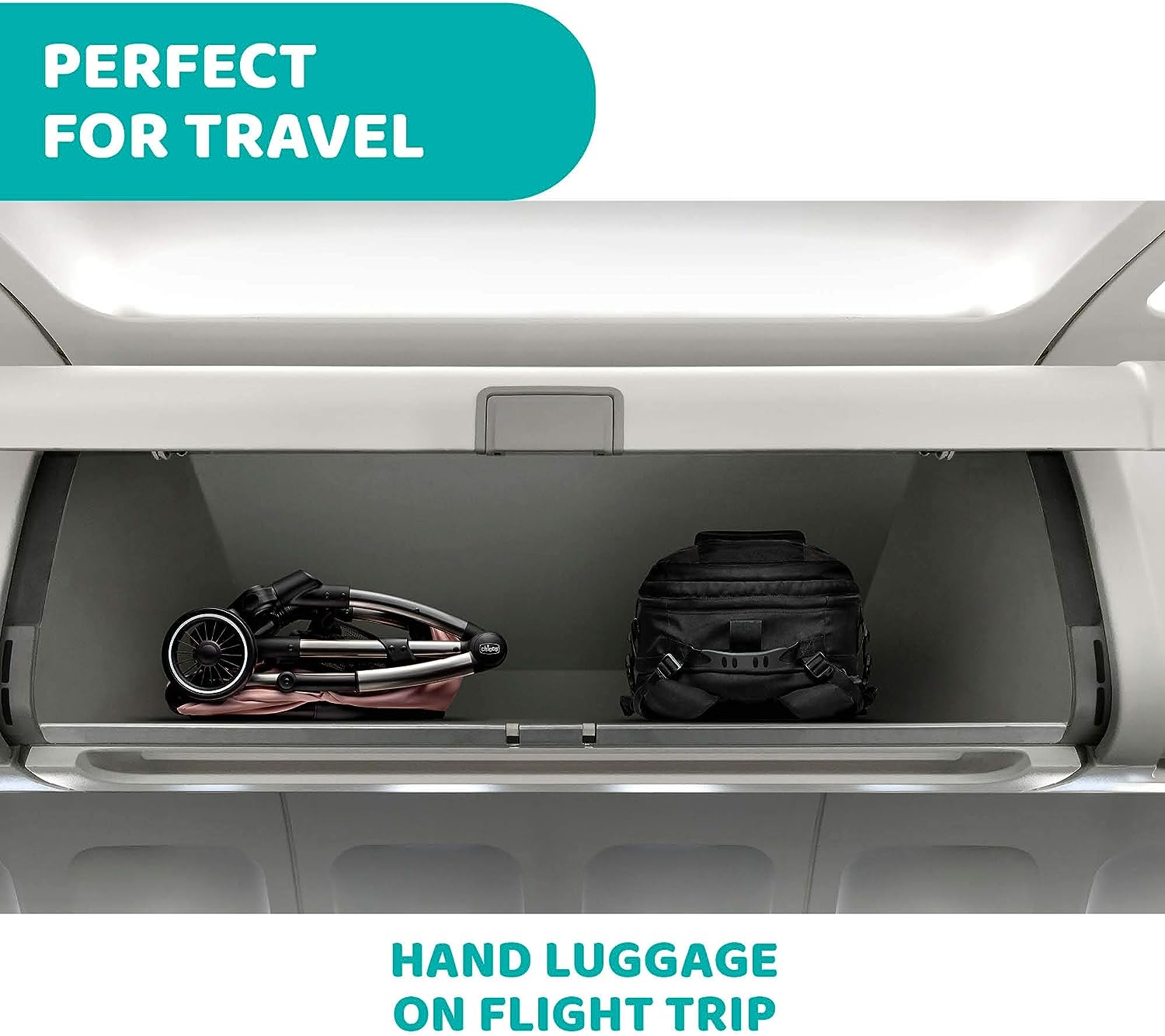 - O Cheerio é tão compacto que os pais podem facilmente levar o carrinho como bagagem de mão durante os voos, além disso, quando o carrinho é dobrado, é possível descer pela barra do para-choque