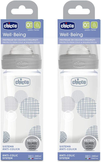 2 mamadeiras em vidro Chicco Well-Being 240 ml.