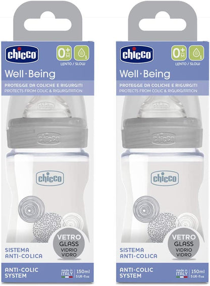 2 mamadeiras em vidro Chicco Well-Being 150 ml,