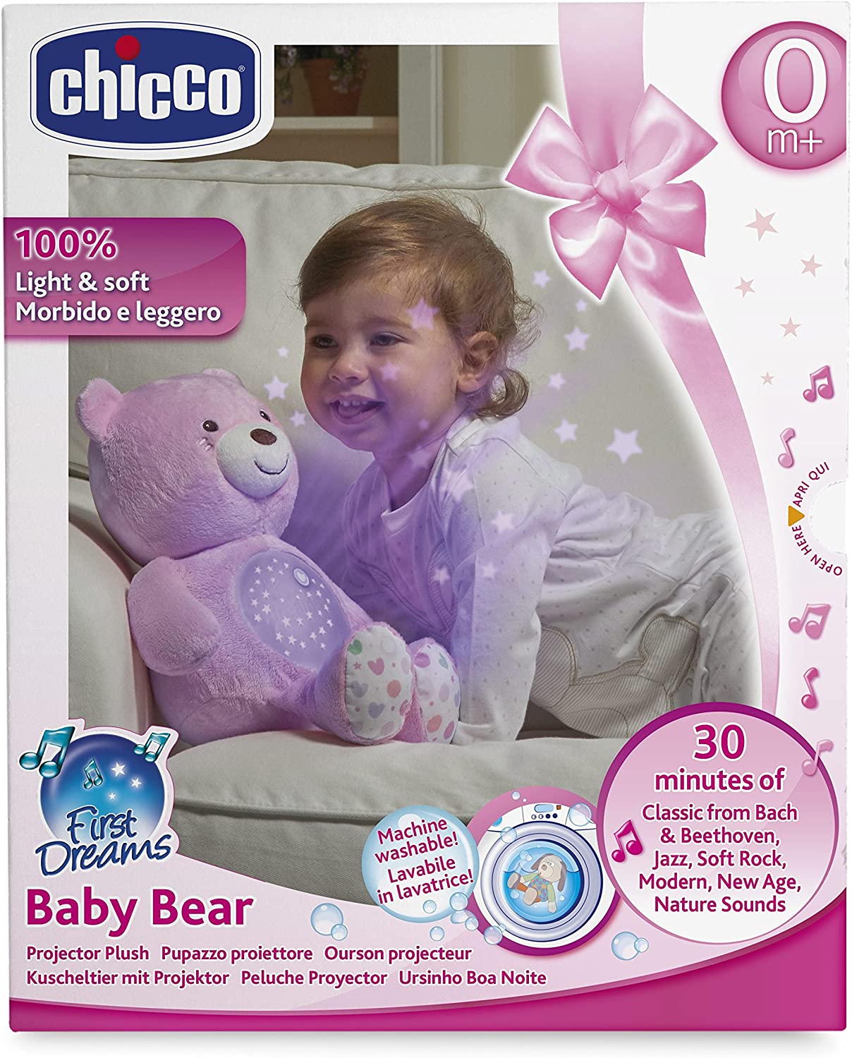Chicco First Dreams - Bebê urso rosa musical com luz noturna - Brinquedo pelúcia
