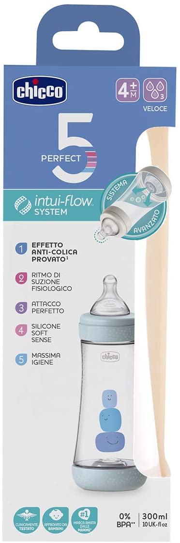 Sistema Intuiflow: graças ao efeito combinado do bico de mamadeira fisio e da membrana de equilíbrio no fundo da mamadeira, o inovador sistema Chicco Intuiflow permite uma alimentação fisiológica, intuitiva e natural para o bebé.