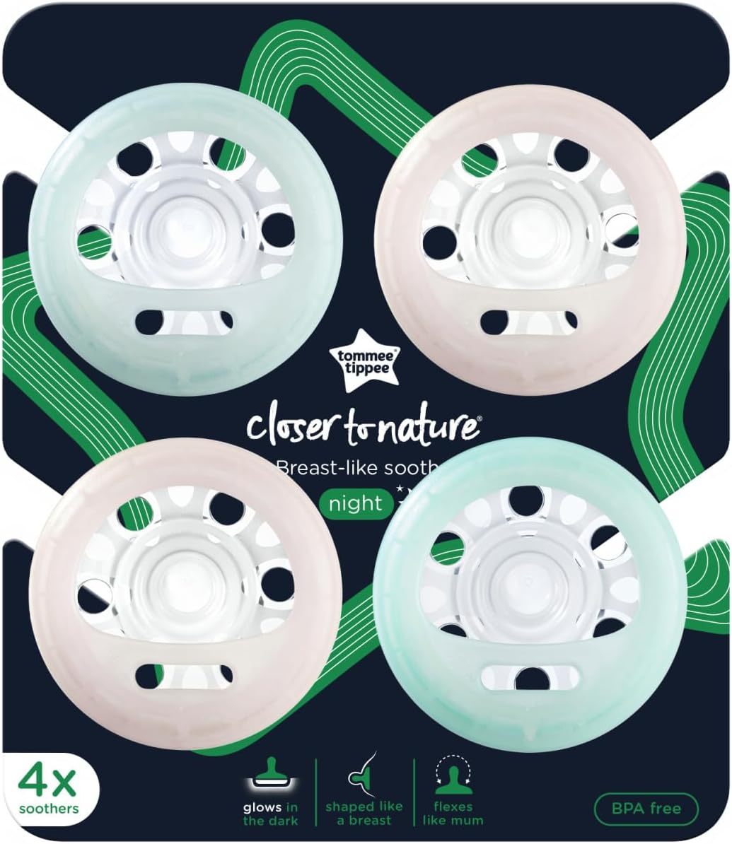 - Recarrega à luz do dia:A chupeta noturna de silicone Tommee Tippee recarrega usando a luz do dia para brilhar no escuro
