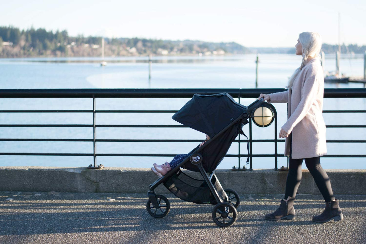Sempre confortável: capota uv50 + extensível com duas janelas peek-a-boo magnéticas que mantêm a sombra do bebê, além de suporte ajustável para panturrilhas e assento reclinável em várias posições