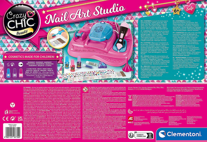 Clementoni 18730 Crazy Chic Studio Designer, conjunto polonês, arte e artesanato, unhas para crianças, presentes para meninas de 7 anos, manicure artesanal, brinquedos criativos