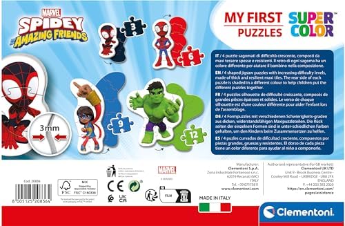 Clementoni 20836 Marvel Homem-Aranha e Seus Incríveis Amigos Quebra-cabeça de 3, 6, 9 e 12 peças - Supercolorido para crianças de 2 a 4 anos, desenho animado, formato especial, presente para meninos, quebra-cabeça infantil