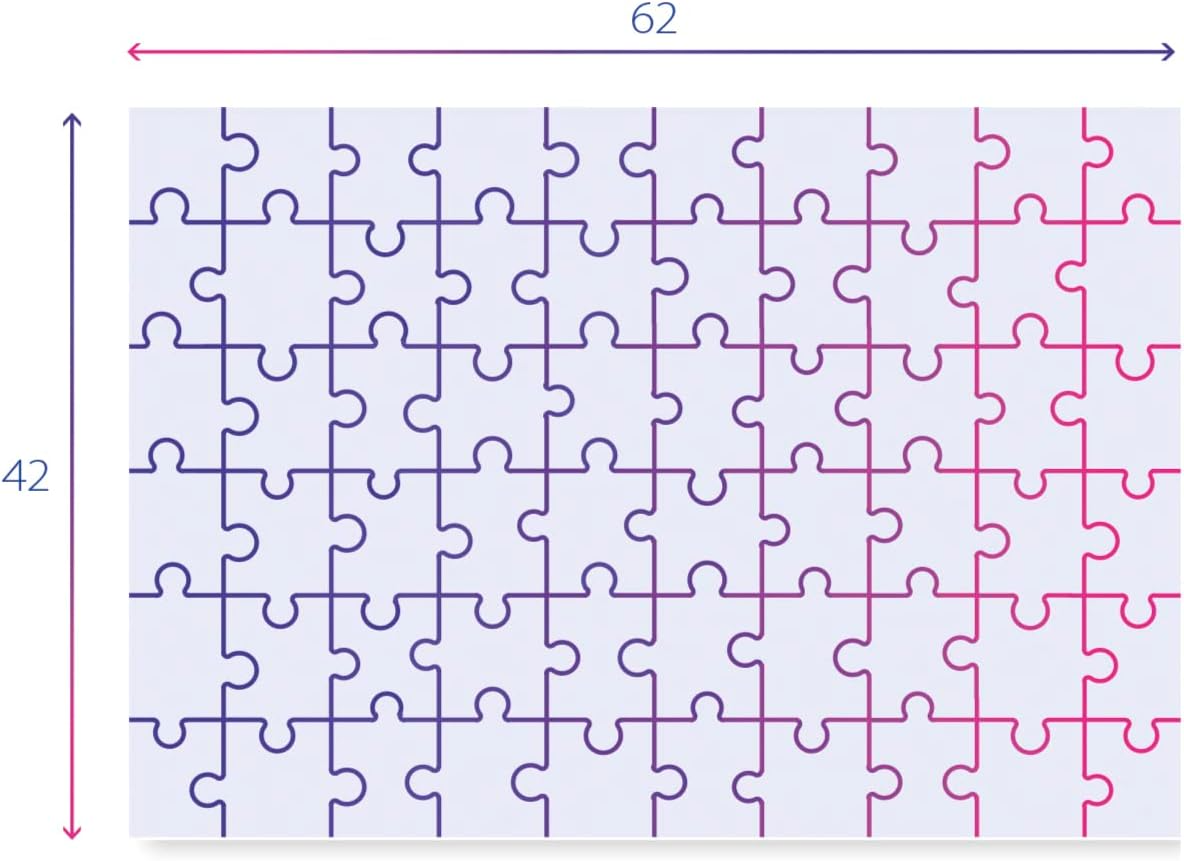 - Tamanho do quebra-cabeça completo: 62 x 42 cm