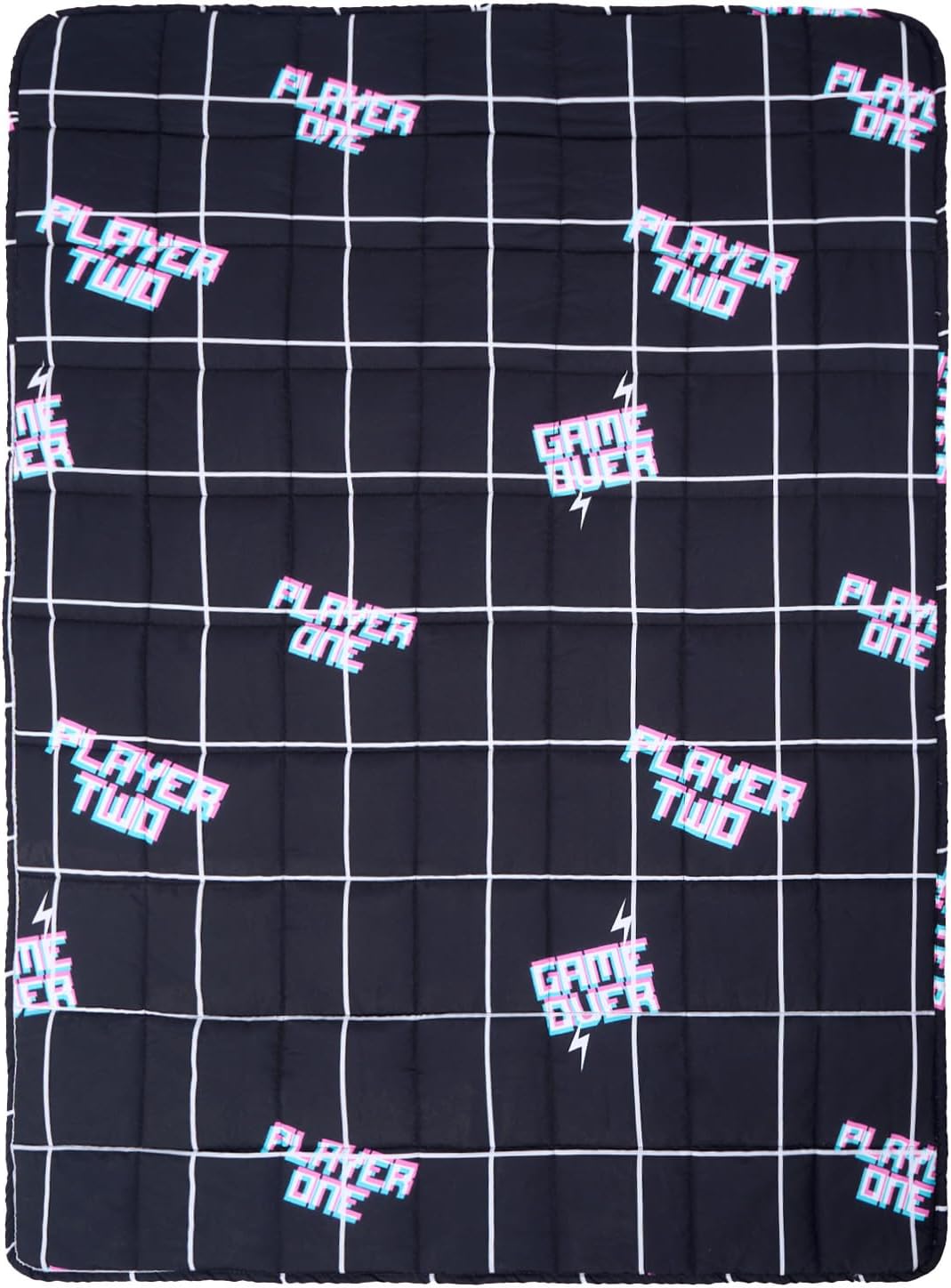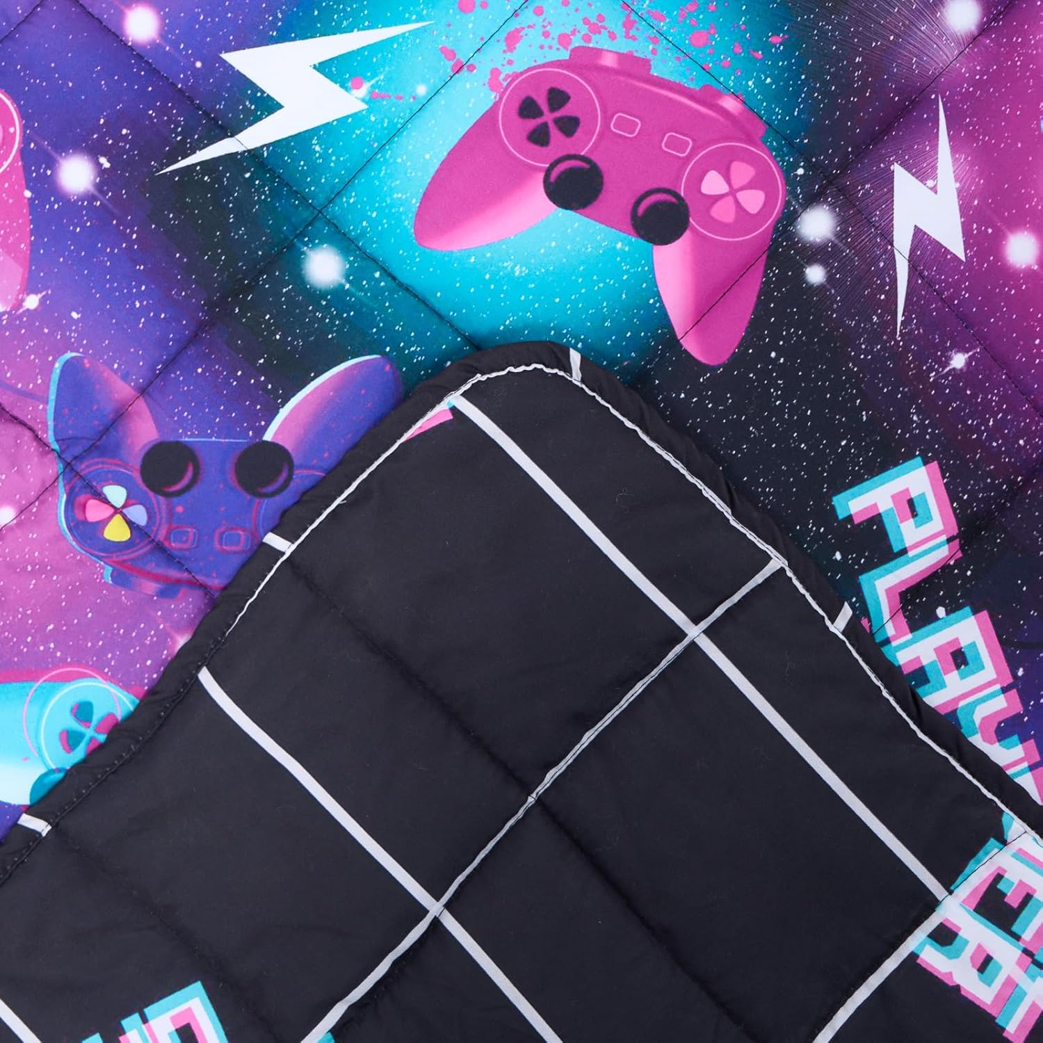 - Cobertor gamer preto com peso, com tema espacial, controles e design de xadrez reversível. Cobertor gamer com peso de microfibra com bolsos igualmente costurados que se espalham por todo o cobertor. O cobertor com peso de 3 kg ajuda a gerar um efeito calmante e promove um sono reparador e relaxamento.
