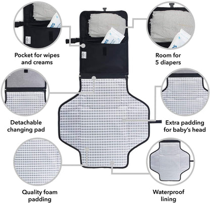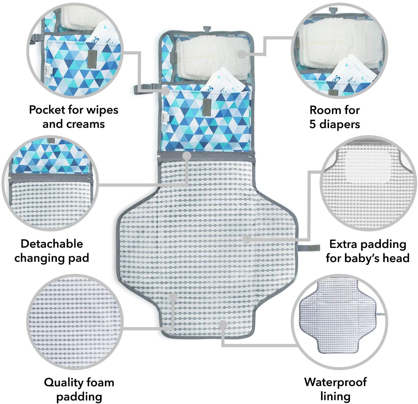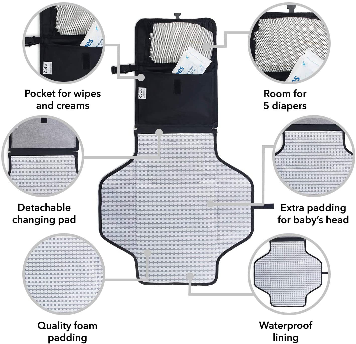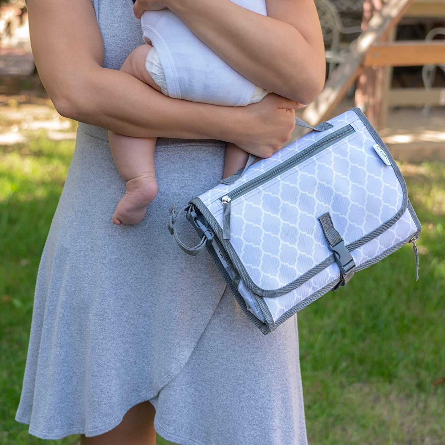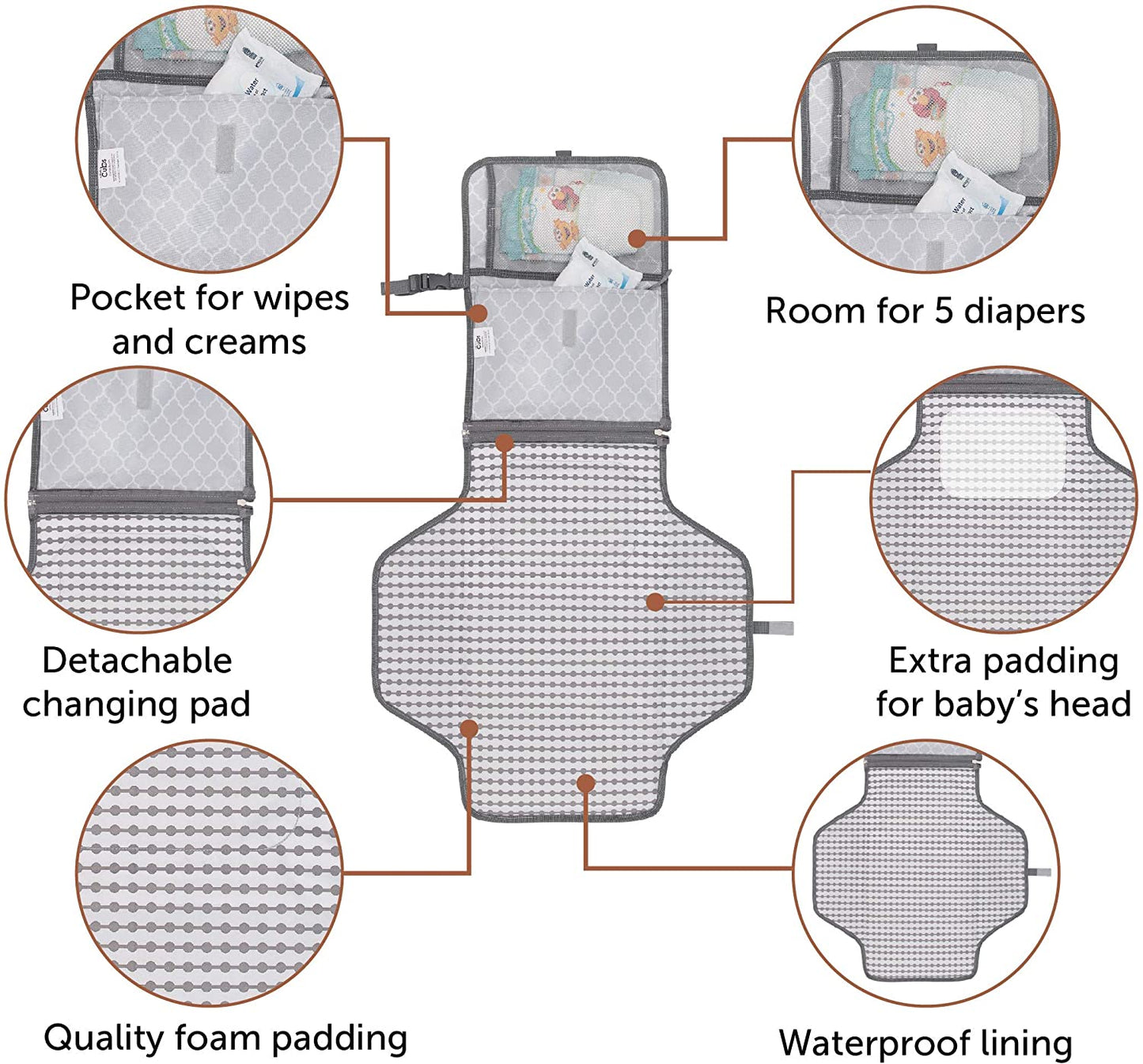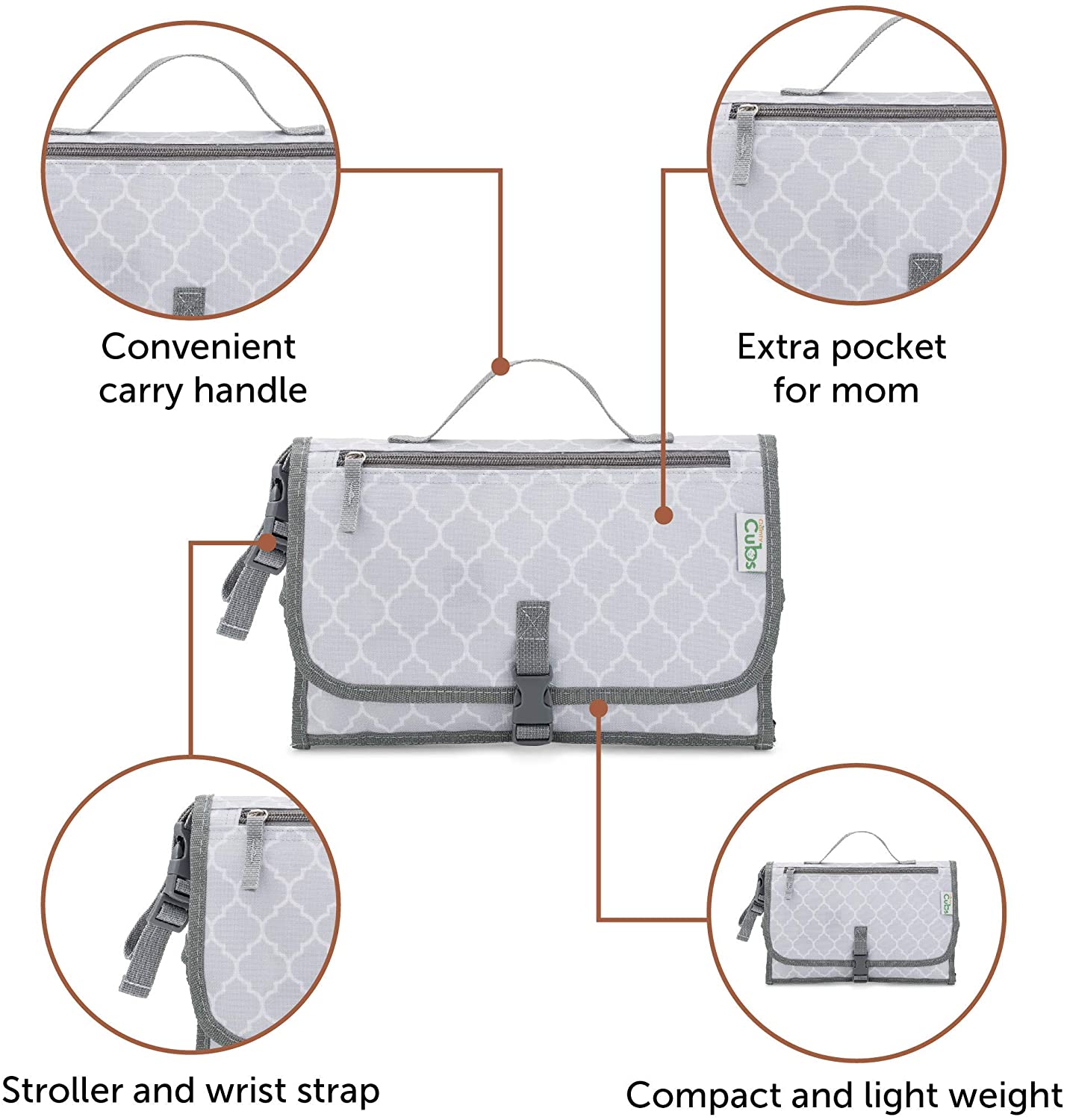 Portátil, fácil de viajar Cada trocador de bebê apresenta uma alça de transporte embutida, uma alça de ombro longa e ajustável e uma alça de pulso / carrinho para maior conveniência.